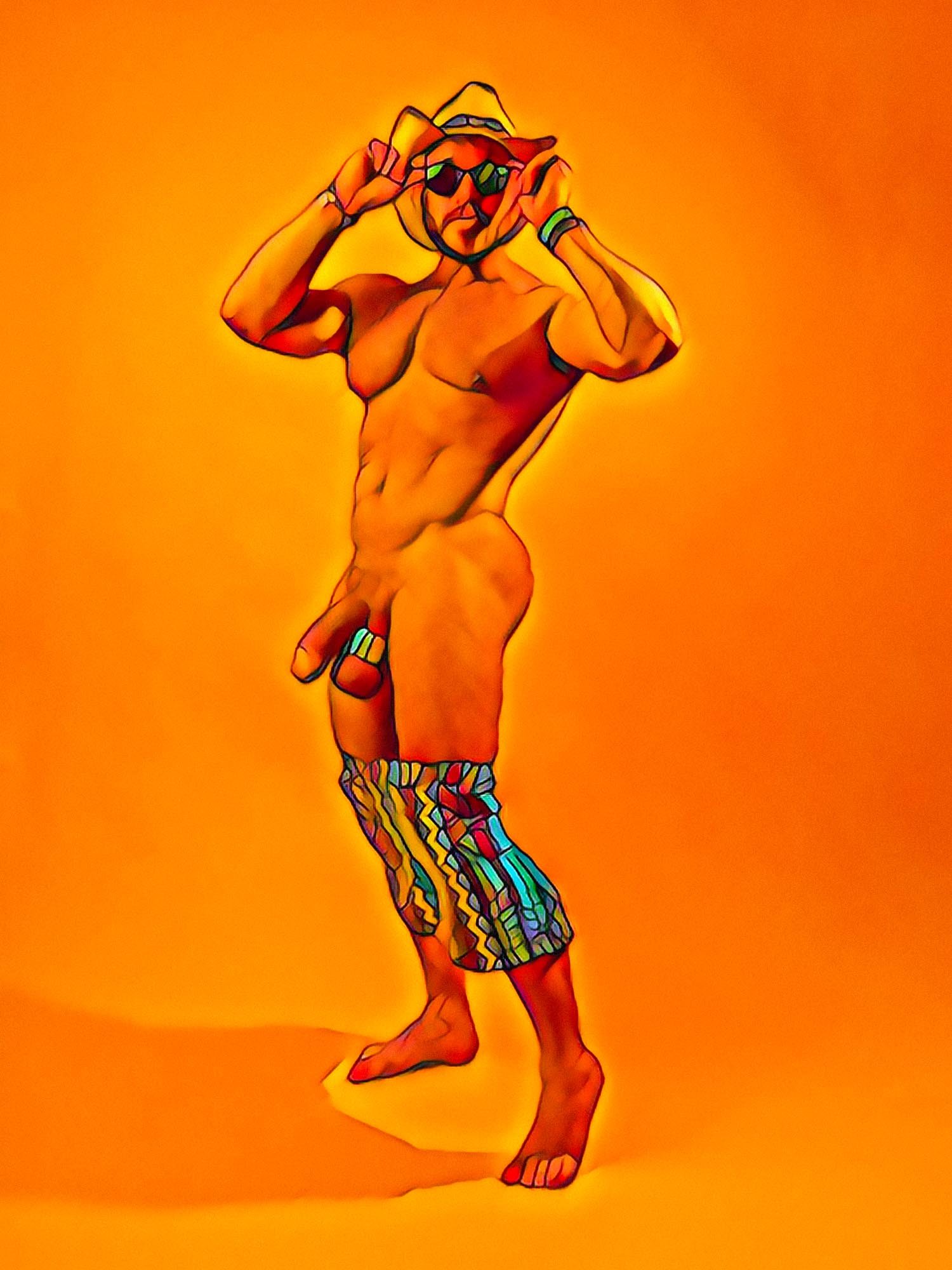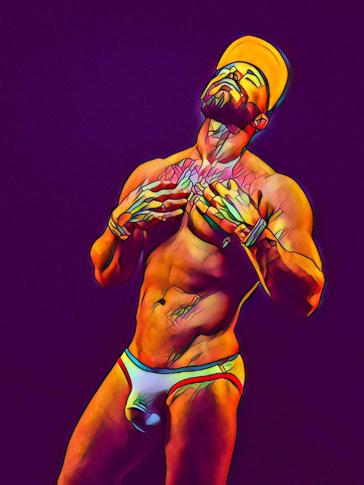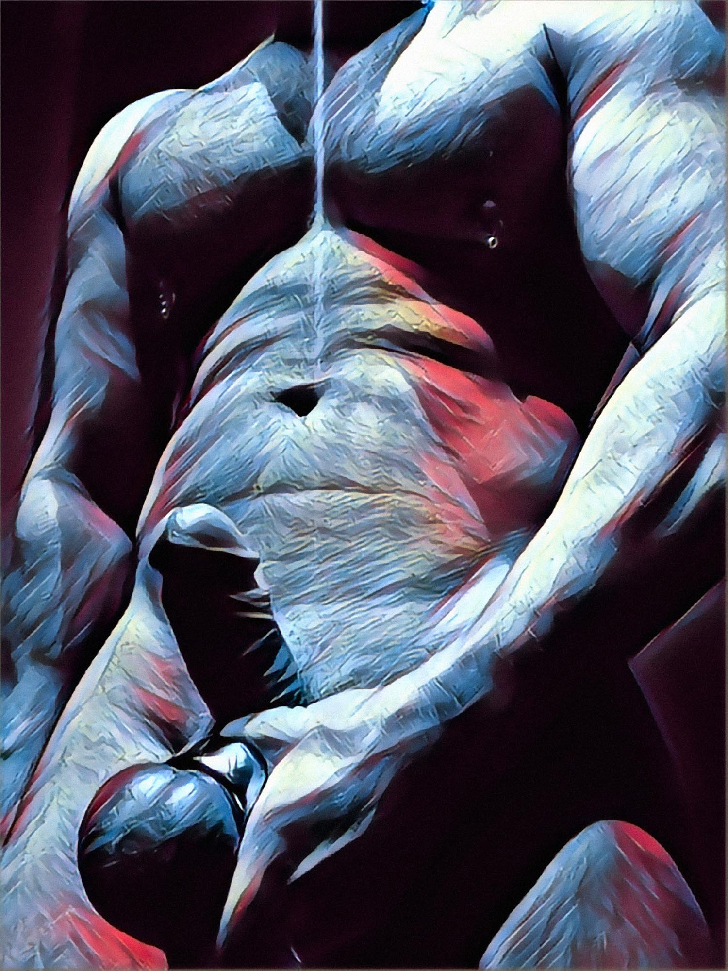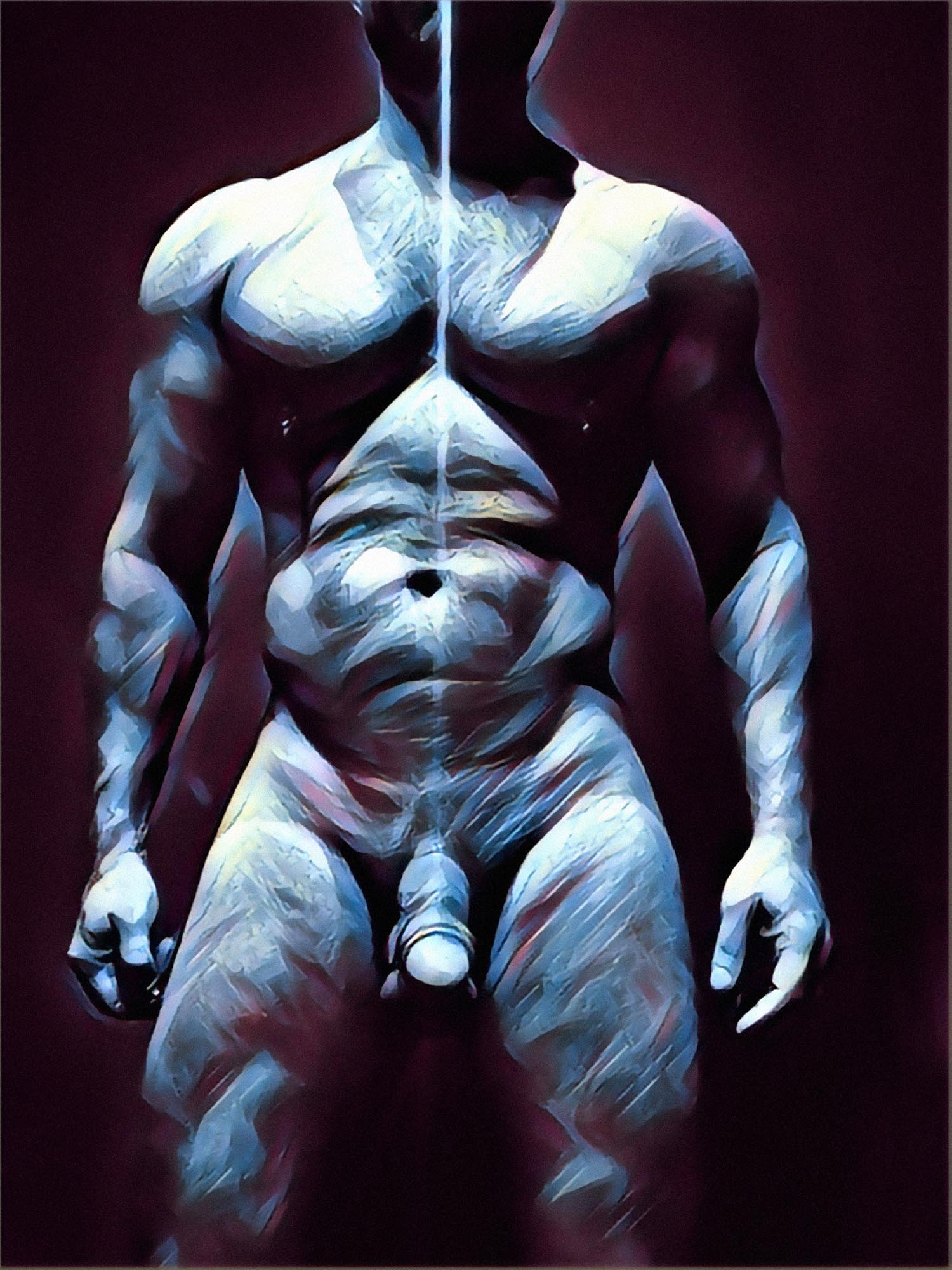 My practice continues this tradition deliberately. In The Fine Art of Homoeroticism, I merge photography and digital painting to present the male body as mythology — not pornography, not fitness documentation, but a philosophical object.