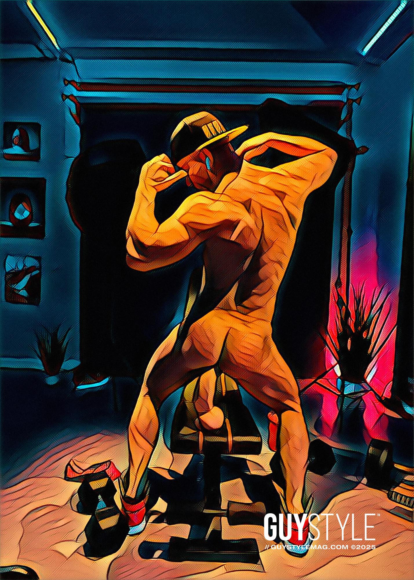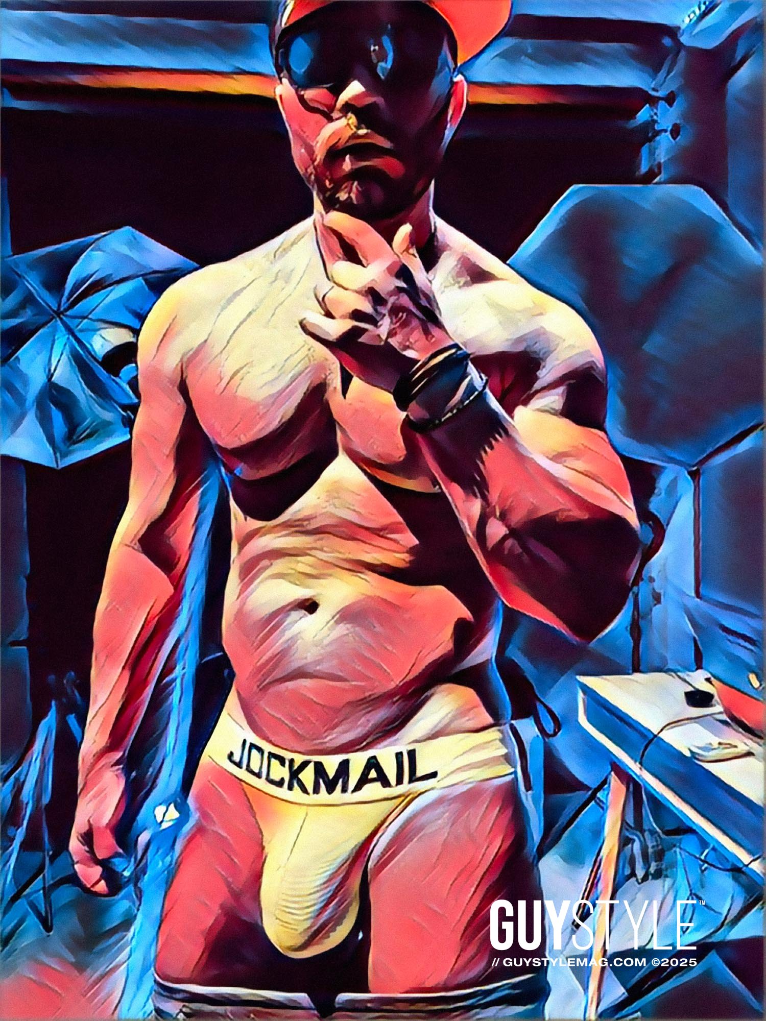 I conceived the Homoerotic Pop Art Prints Collection during the first lockdowns of the pandemic, when isolation forced me to look inward and art became both survival and rebellion. What began as an experiment with my fine-art photography has evolved into a growing continuum of homoerotic pop paintings, reimagined through AI and infused with the color, humor, and tension of contemporary queer life. The work is raw yet precise, playful yet deliberate—a collision of sensuality, technology, and cultural critique that keeps expanding every day.